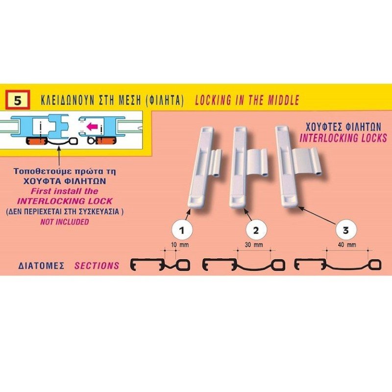 Αντίκρισμα για φιλητά συρόμενα κουφώματα, δηλαδή για φύλλα που συναντώνται στη μέση, για πόρτες και παράθυρα. Έχει σωληνωτή προεξοχή επάνω στην οποία κουμπώνουν οι πίροι της κλειδαριάς που τοποθετείται στο δεξί φύλλο. Η νέα χούφτα βγαίνει σε τρεις διαφορετικούς τύπους για να “υπερσκελίζει” την τυχόν υπάρχουσα κορνίζα (μπινί) σε ορσμένες σειρές αλουμινίου.
