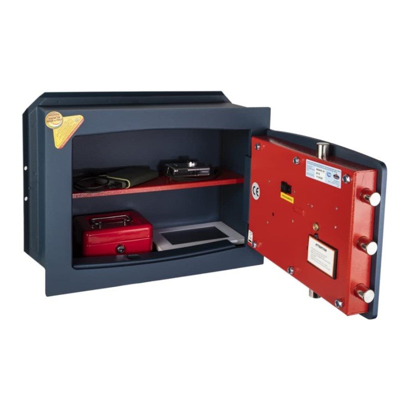 Η σειρά Trony GT 5L με ψηφιακό ηλεκτρονικό συνδυασμό κατασκευάζεται με τις τελευταίες τεχνολογίες κατασκευής και χρήσης νέων υλικών κάτω από αυστηρές δοκιμές και είναι πιστοποιημένη σύμφωνα με τα ευρωπαϊκά πρότυπα. Η κλειδαριά ελέγχεται από ηλεκτρονική ασφάλεια υψηλής αξιοπιστίας εξοπλισμένη με μόνιμη μνήμη υψηλής ασφάλειας, πιστοποιημένη κατά UNI EN 1300. Το χρηματοκιβώτιο τοίχου Technomax Gold GT 5L είναι πιστοποιημένο ICIM για μηχανικούς σύμφωνα με το ευρωπαϊκό πρότυπο UNI-EN 14450 S2 για ιδιωτική χρήση.