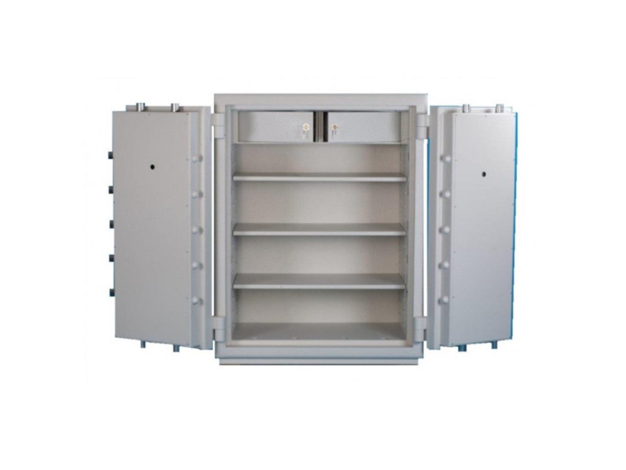 Η όλη ασφάλιση της πόρτας στηρίζεται σε 16 συνολικά πείρους (σύρτες) κυλινδρικής ολισθήσεως, διατομής 40 mm που την ασφαλίζουν περιμετρικά.
