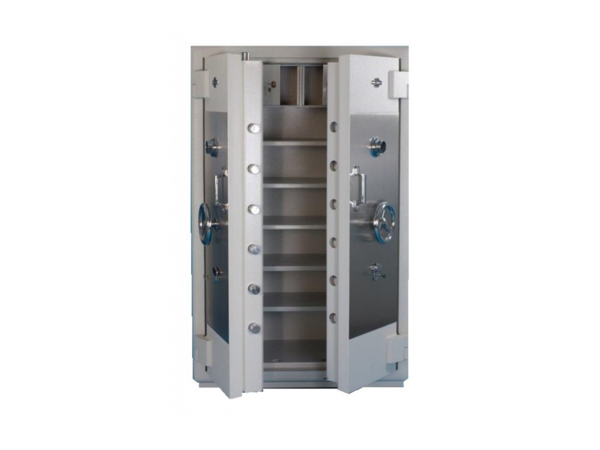 Η όλη ασφάλιση της πόρτας στηρίζεται σε 16 συνολικά πείρους (σύρτες) κυλινδρικής ολισθήσεως, διατομής 40 mm που την ασφαλίζουν περιμετρικά.