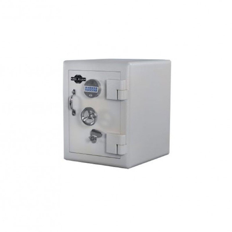 Ο θώρακας της πόρτας και του σώματος τoυ χρηματοκιβωτίου αποτελούνται από ένα εξωτερικό και ένα εσωτερικό έλασμα. Το έλασμα είναι κατηγορίας DIN 17100 RCT 37-2. Η πόρτα των χρηματοκιβωτίων ασφαλίζει περιμετρικά με οκτώ (8) συμπαγείς πείρους. Το βολάν χειρισμού των εμβόλων, η χειρολαβή έλξης και το επιστόμιο της κλειδαριάς είναι από ορείχαλκο επιχρωμιωμένο.