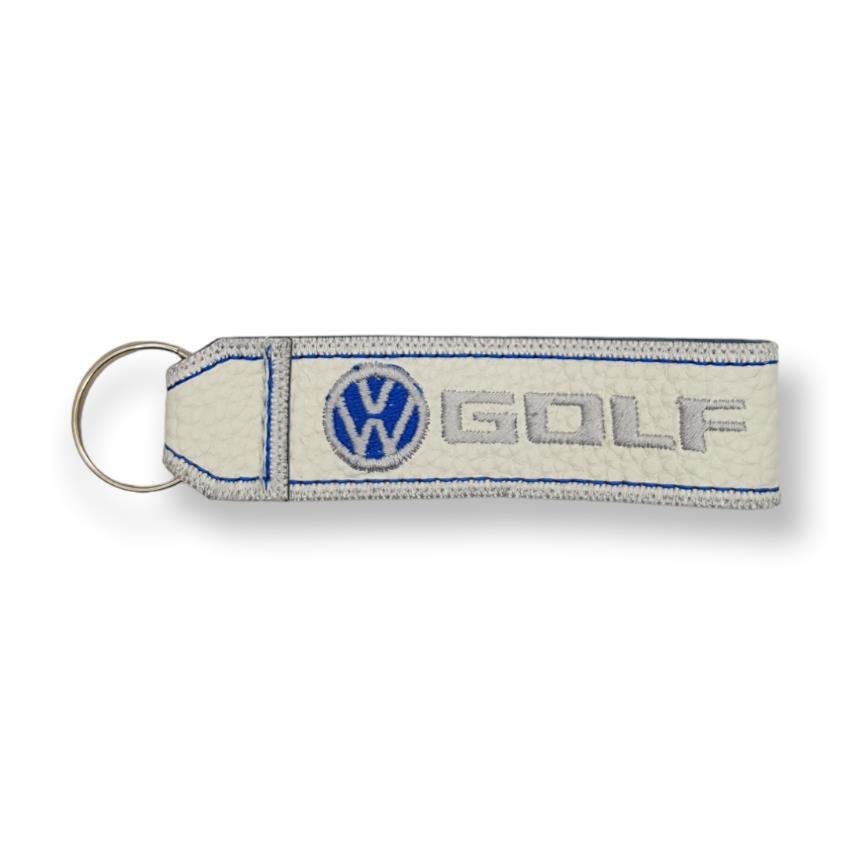 Δερμάτινο Κεντητό Μπρελόκ VW GOLF Λευκό