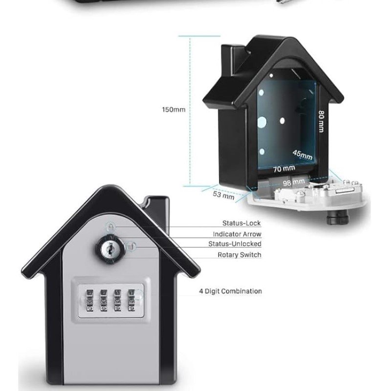 Ασφαλής θυρίδα ασφαλείας συνδυασμού με κωδικό κλειδώματος για τα κλειδιά σας. Με κλείδωμα συνδυασμού 4 ψηφίων για εξασφάλιση ασφάλειας, ιδανικό για ασφαλή αποθήκευση κλειδιών. Σχεδιασμένο και ανθεκτικό στις καιρικές συνθήκες, καθίσταται κατάλληλο για εξωτερική χρήση. Κάλυμμα κλείστρου με δυνατότητα τοποθέτησης στον τοίχο. Με σχέδιο που του επιτρέπει τη λειτουργία με το ένα χέρι.