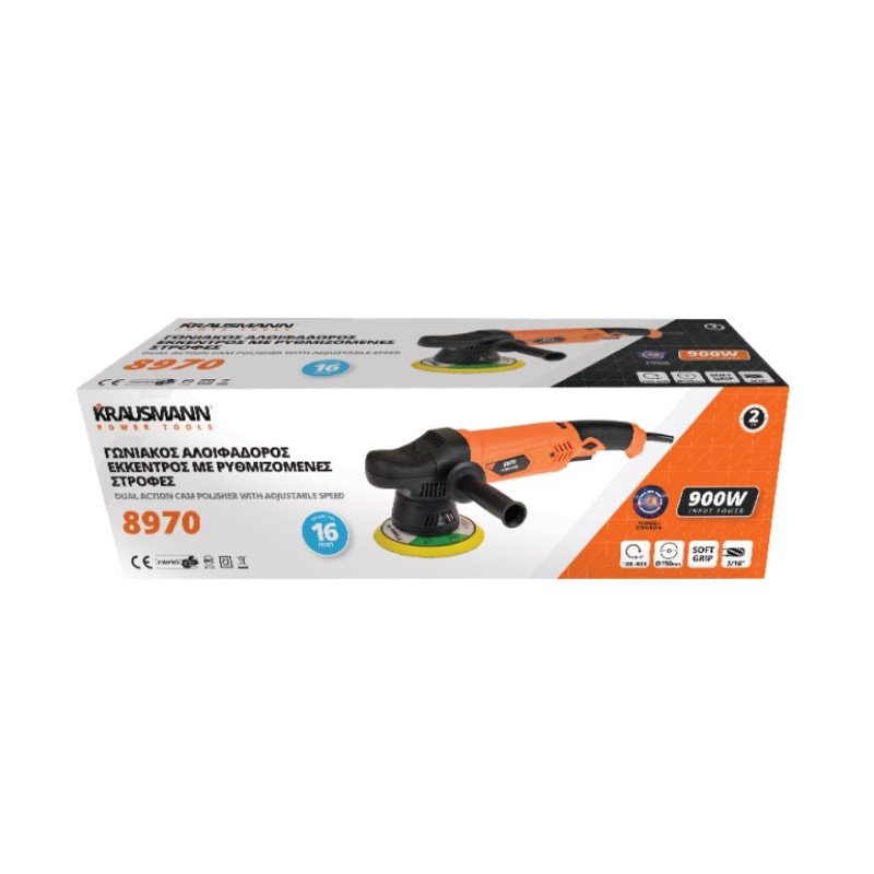 Γωνιακός Αλοιφαδόρος Έκκεντρος Ø180mm Με Ρυθμιζόμενες Στροφές 900W Krausmann (8970)