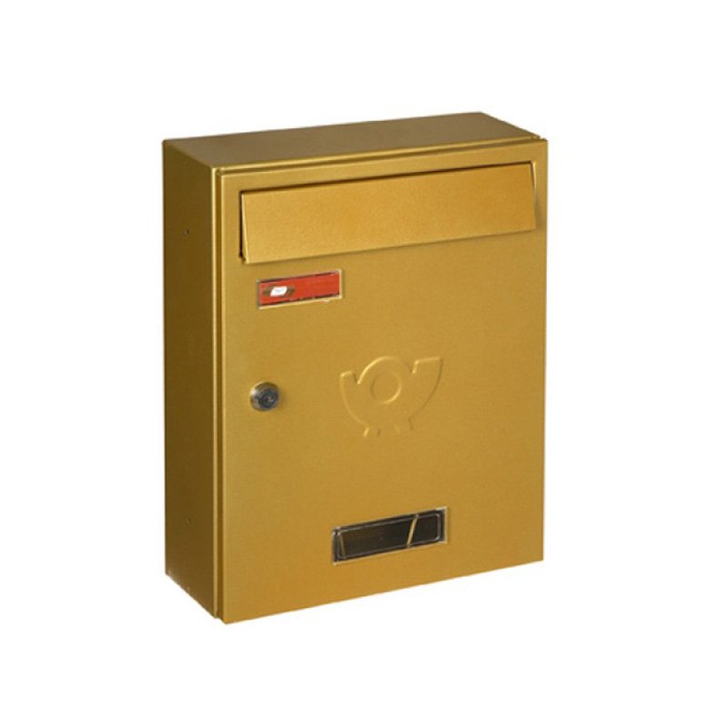 Ατσάλινο γραμματοκιβώτιο, ελληνικής κατασκευής, κατασκευασμένο έτσι ώστε να τοποθετείται όλη η αλληλογραφία στη θέση της.