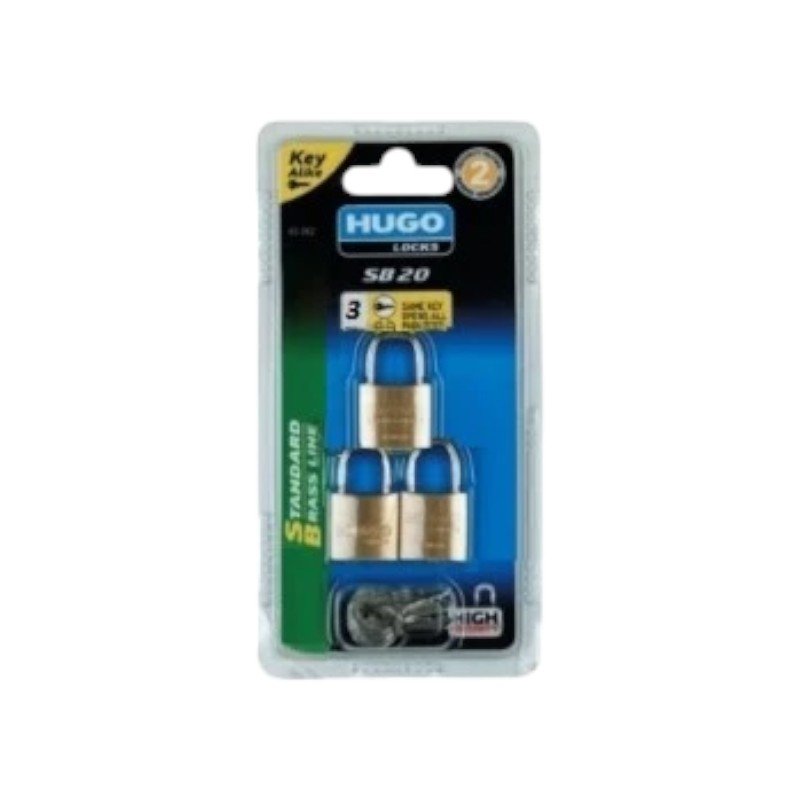 Λουκέτο HUGO SB20 ορειχάλκινο σε συσκευασία blister 2, 3 ή 4 λουκέτα