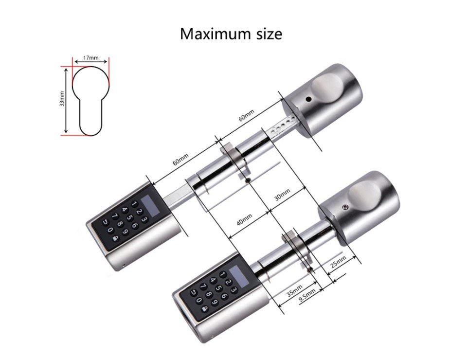 Έξυπνος κύλινδρος ασφαλείας για Airbnb. Κατάλληλο για αντικατάσταση του υπάρχοντος κυλίνδρου της κλειδαριάς και διαθέτει ένα αυτόνομο σύστημα ελέγχου πρόσβασης με πληκτρολόγιο, αναγνώστη για κάρτες προσέγγισης και bluetooth ιδανικό για όλες τις πόρτες που απαιτούν έλεγχο.