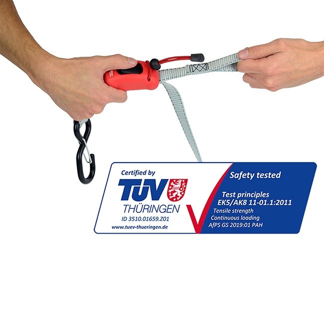 Ιμάντας με πόρπη & γάντζο τύπου S με έλασμα ασφαλείας της Masterlock για φορτία έως 250kg. Είναι ένας προσυναρμολογημένος ιμάντας πρόσδεσης με σφιγκτήρα ελατηρίου 2,50 m x 25 mm για απλότητα και ευκολία στη χρήση. Ρυθμίστε το μήκος του ιμάντα χρησιμοποιώντας το εύχρηστο κουμπί. Δύο γάντζοι S με κλιπ ασφαλείας κρατούν τον ιμάντα σταθερό στα σημεία στερέωσης ακόμα και όταν δεν υπάρχει πίεση. Το Strap Trap™ θα ασφαλίζει τον πλεονάζοντα ιμάντα κατά τη μεταφορά του φορτίου και θα αποθηκεύσει τον ιμάντα εύκολα όταν δεν χρησιμοποιείται, αποφεύγοντας τα μπερδέματα.