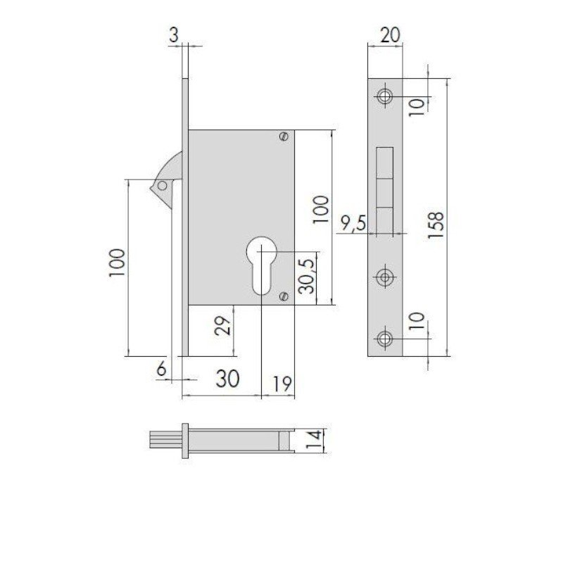 - Χωνευτή Κλειδαριά AGB B007053003 για συρόμενες πόρτες