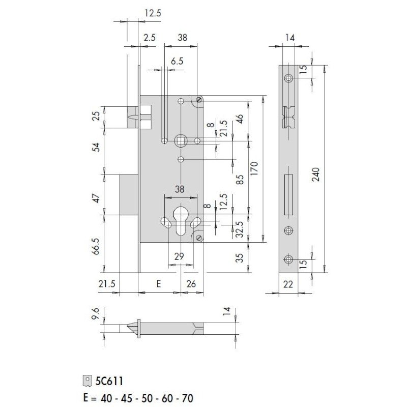 Εσωτερική (χωνευτή) κλειδαριά από την εταιρεία CISA, με κωδικό 5C611.