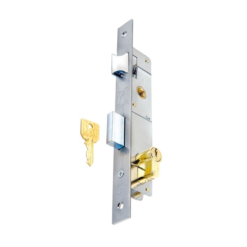 Η κλειδαριά Γλωσσού,με κέντρα 20χιλ. είναι κατάλληλη για σιδηρόπορτες και για κοιλοδοκούς σιδήρου με πλάτος έως 50mm και έχει γλώσσα που βγαίνει 17χιλ. με μία στροφή για μεγαλύτερη ασφάλεια. Μετατρέπεται εύκολα από δεξιά σε αριστερή και αντίστροφα.