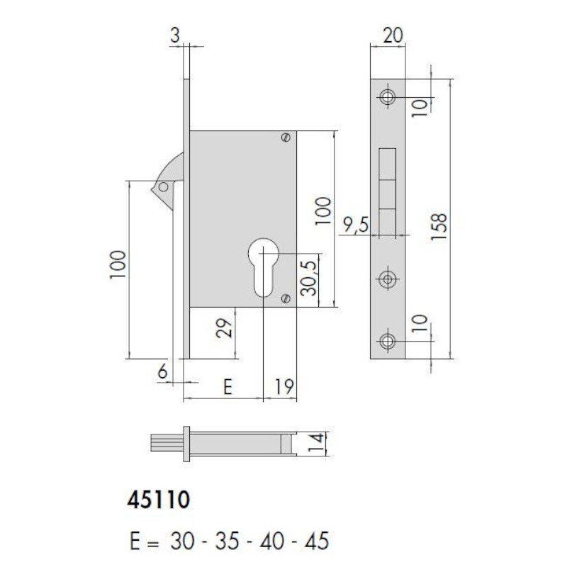 • Χωνευτή Κλειδαριά Cisa 45110 για συρόμενες πόρτες