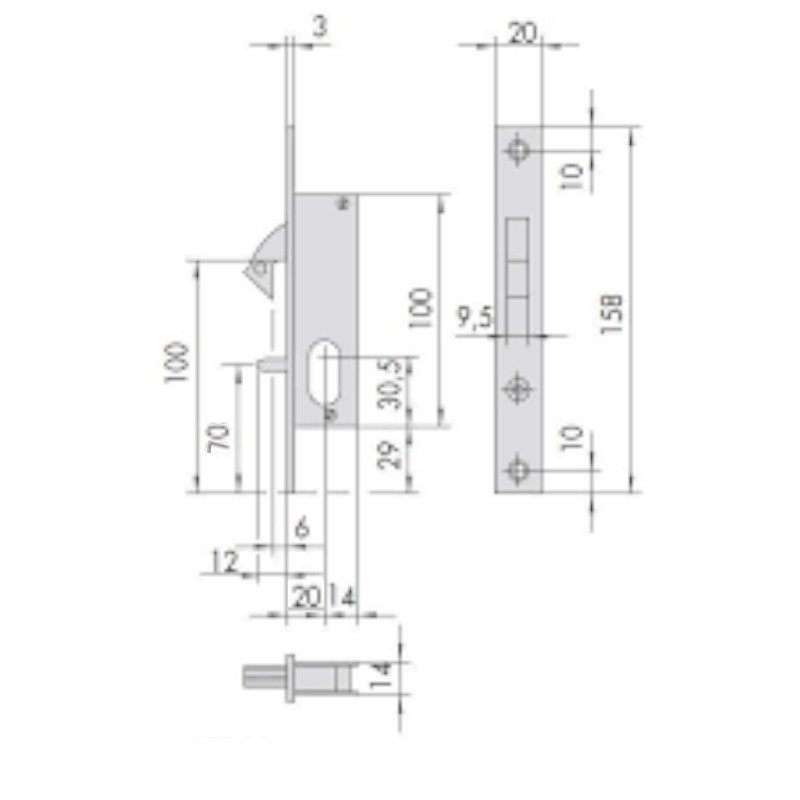 Κλειδαριά Απλή Κουτιαστή Domus 96050