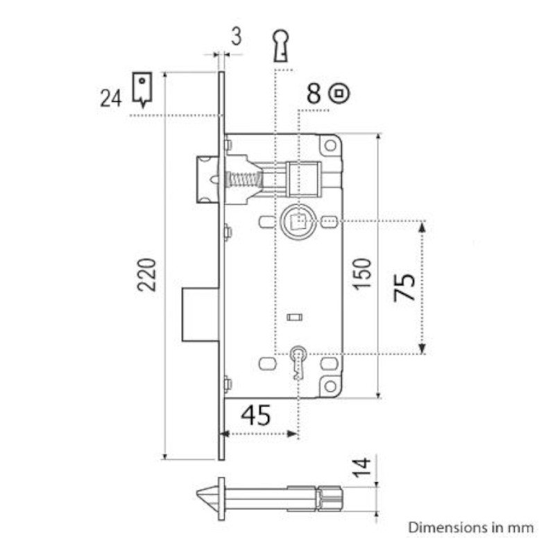 - Απόσταση πομόλου-υποδοχής κλειδιού: 75mm