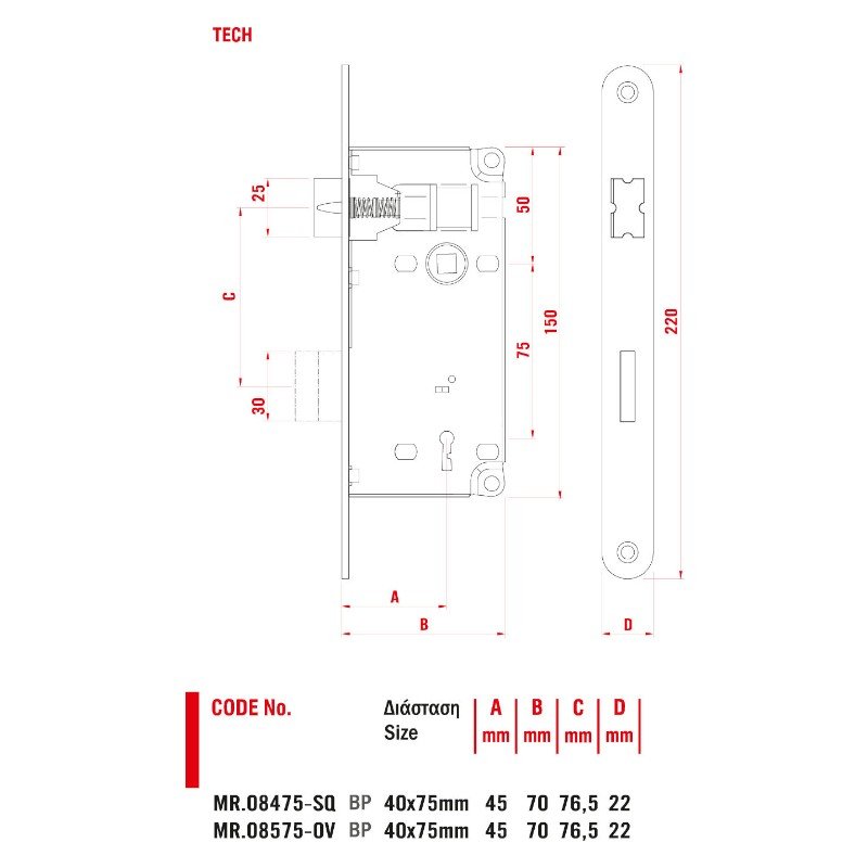 - Κατάλληλη για ξύλινες μεσόπορτες