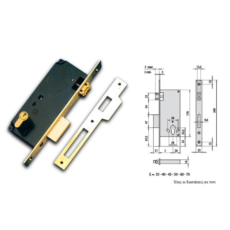 - Στην συσκευασία περιλαμβάνονται η κλειδαριά, αντίκρυσμα και οι βίδες στήριξης