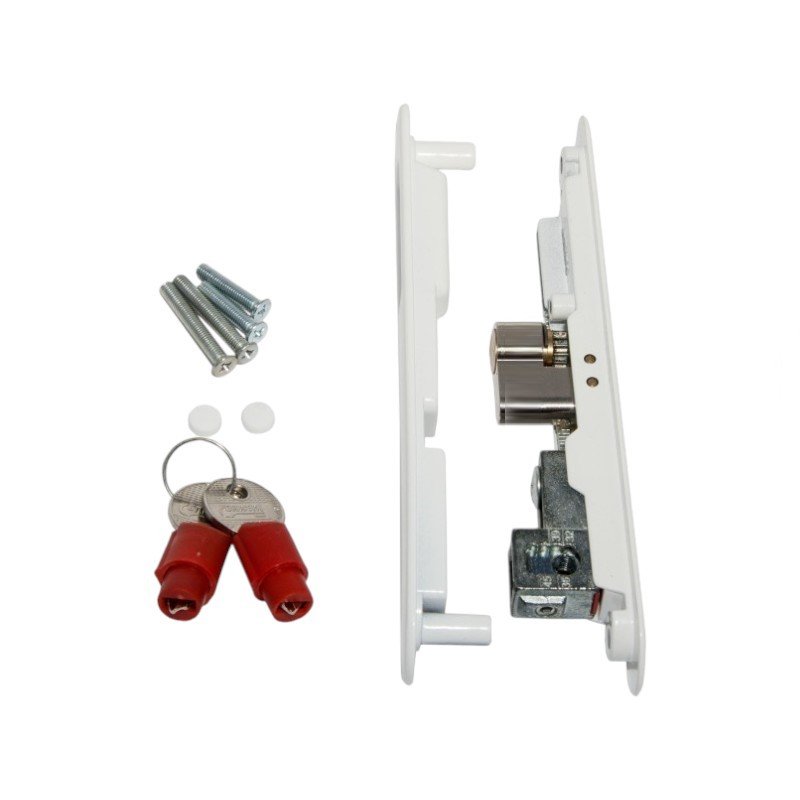 Κλειδαριά Χωνευτή Συρόμενου Αλουμινίου Powerlock Με Κύλινδρο Λευκή (Pl-46)