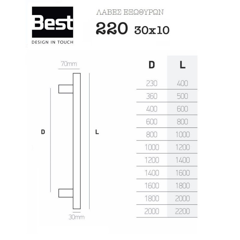 Λαβή εξώθυρας Best 220, minimal σχεδιασμός, υψηλή ποιότητα κατασκευής, άκρως λειτουργική και πρακτική