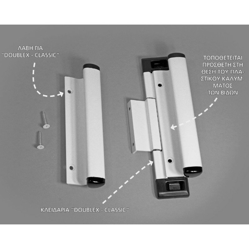 Λαβή πρόσθετη τοποθετείται επάνω στην κλειδαριά Doublex Classic καθώς και στη χούφτα για να διευκολύνει να σύρουμε βαριά φύλλα.