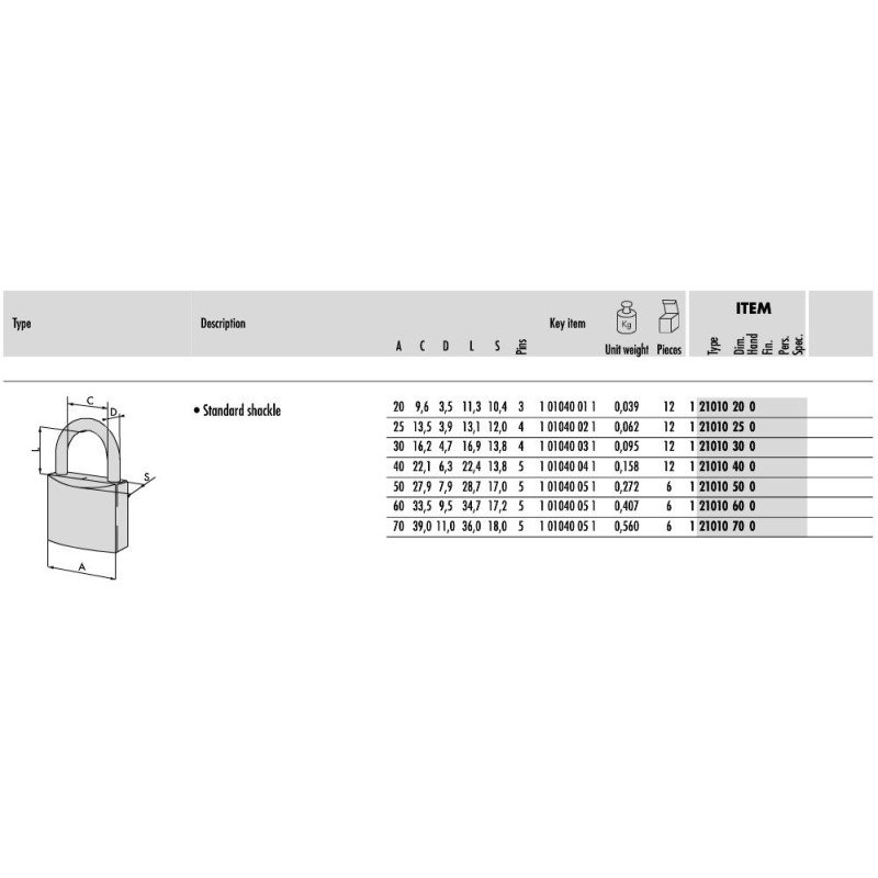 Λουκέτα CISA L.Line Ορειχάλκινα Μακρύλαιμα με Ίδιο Κλειδί από την εταιρεία CISA.