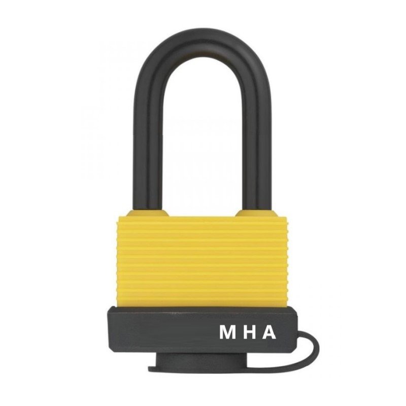 Λουκέτο Ανοξείδωτο MHA Candado Μακρύλαιμο, πλαστικοποιημένο, εξωτερικού χώρου, με ειδική αντισκουριακή προστασία σε πολύ οικονομικές τιμές.