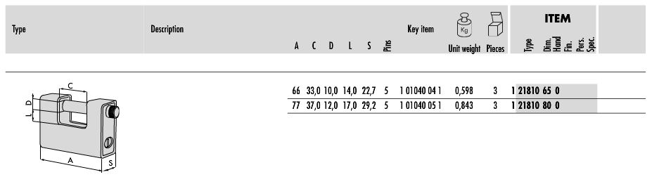 Λουκέτο Cisa L.LINE Τάκος Ατσάλινος Ενισχυμένος Με Ίδιο Κλειδί (21810-KA) από την εταιρεία CISA.