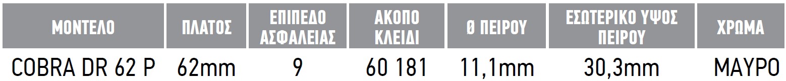 Λουκέτο Cobra DR 62 P Ατσάλινο Συνδιασμού Κλειστού Τύπου GR4,5S (60125)