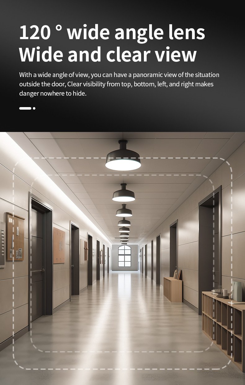 - Ευρεία Γωνία Θέασης: Η 120° ευρεία γωνία θέασης εξασφαλίζει πλήρη κάλυψη του χώρου μπροστά στην πόρτα σας.