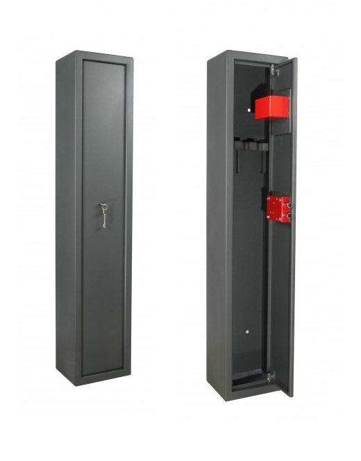 Οπλοκιβώτια με κλειδί του ισπανικού οίκου Arregui σε πέντε διαστάσεις, για 2, 3, 5, 7 και 10 όπλα αντίστοιχα. Ατσάλινη κατασκευή με κλειδαριά ασφαλείας και ειδικές βάσεις για τα όπλα.