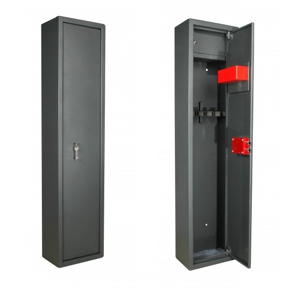 Οπλοκιβώτια με κλειδί του ισπανικού οίκου Arregui σε πέντε διαστάσεις, για 2, 3, 5, 7 και 10 όπλα αντίστοιχα. Ατσάλινη κατασκευή με κλειδαριά ασφαλείας και ειδικές βάσεις για τα όπλα.
