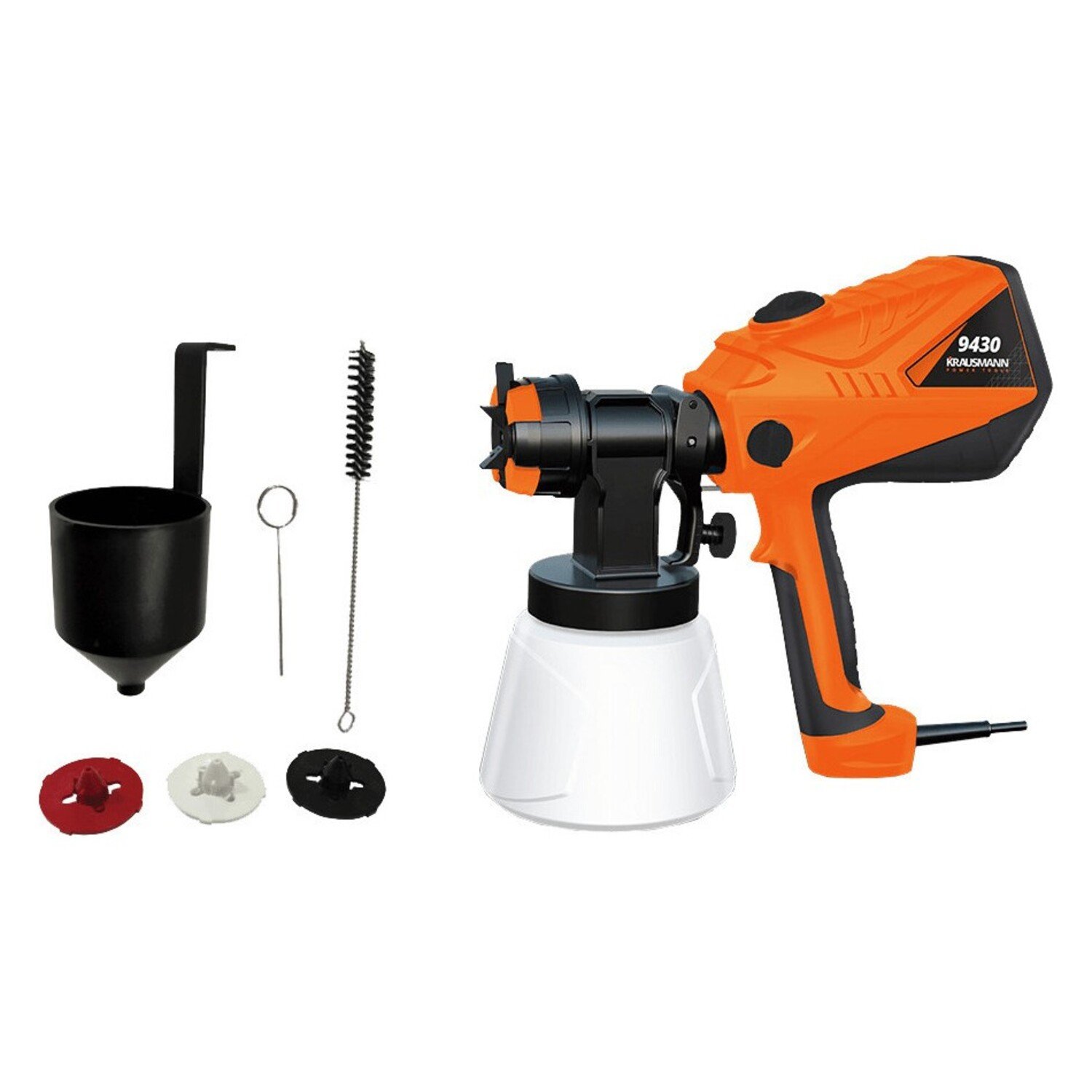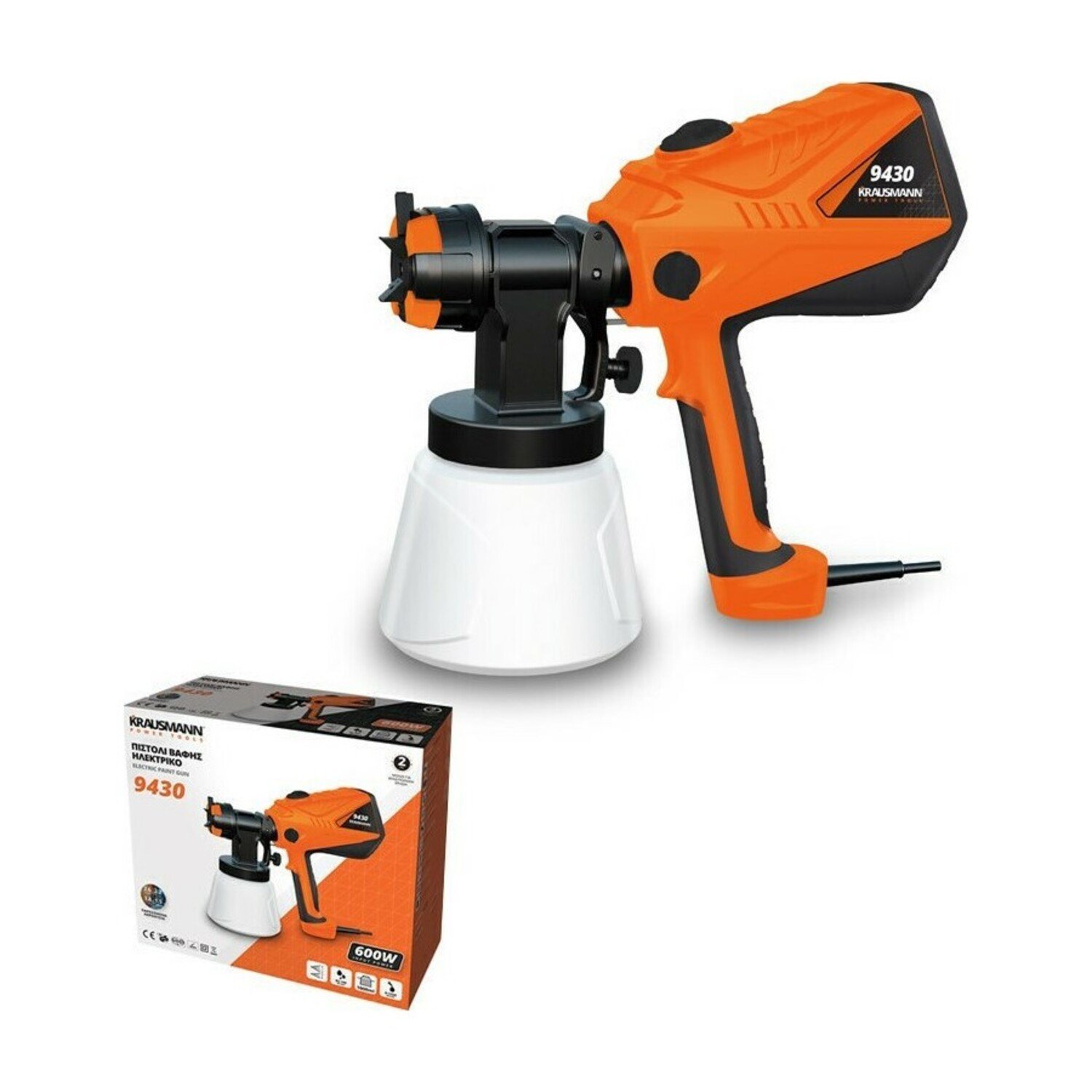 Πιστόλι βαφής ηλεκτρικό KRAUSMANN® 9430 600W, κατάλληλο για γρήγορη ολοκλήρωση κάθε εργασίας βαφής με την ελάχιστη προσπάθεια. Ιδανικό για μικρές και μεσαίες επιφάνειες από διαφορετικά υλικά, όπως τοίχους, πόρτες, κ.α. Με το σύστημα “Click & Paint”, το μπροστινό ακροφύσιο ψεκασμού μπορεί να αντικατασταθεί γρήγορα και εύκολα. Περιλαμβάνει 1 κύπελλο ιξώδους, 1 βελόνα καθαρισμού, 1 βούρτσα καθαρισμού και 4 × ακροφύσια 1.5/1.8/2.2/2.6 mm.