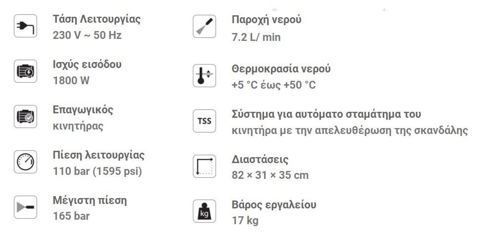 • αυλό υψηλής πίεσης με ρυθμιζόμενη βεντάλια