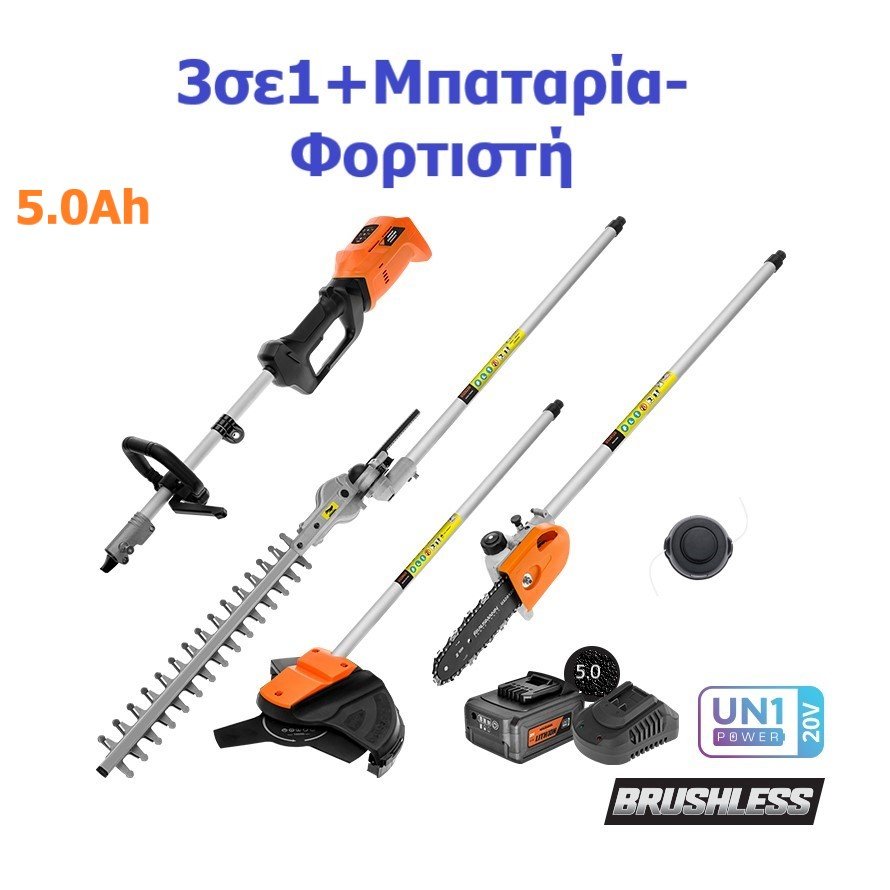 Πολυμηχάνημα Διαιρούμενο Επαναφορτιζόμενο 20V BL με Χορτοκοπτικό, Κονταροπρίονο, Κλαδευτήρι & 1 Μπαταρία 5.0Ah με Ταχυφορτιστή (US505-15B)