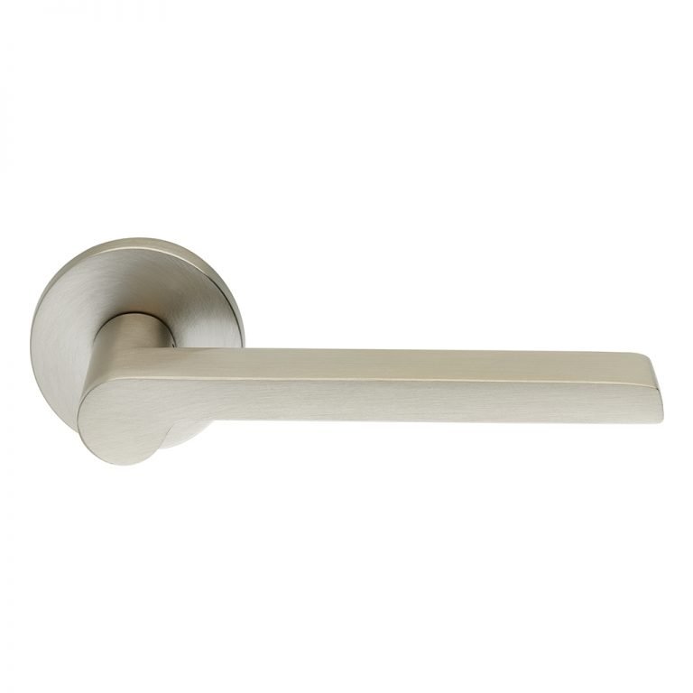 Πόμολο με παραλληλόγραμμη χειρολαβή και στρογγυλή ροζέτα, μία ξεχωριστή πρόταση για το σπίτι, το γραφείο, το ξενοδοχείο.