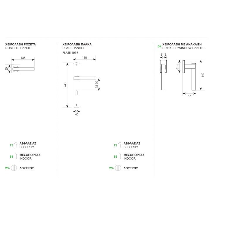Προσοχή: Για τα πόμολα WC χρειάζεται ειδική κλειδαριά την οποία μπορείτε να βρείτε ΕΔΩ