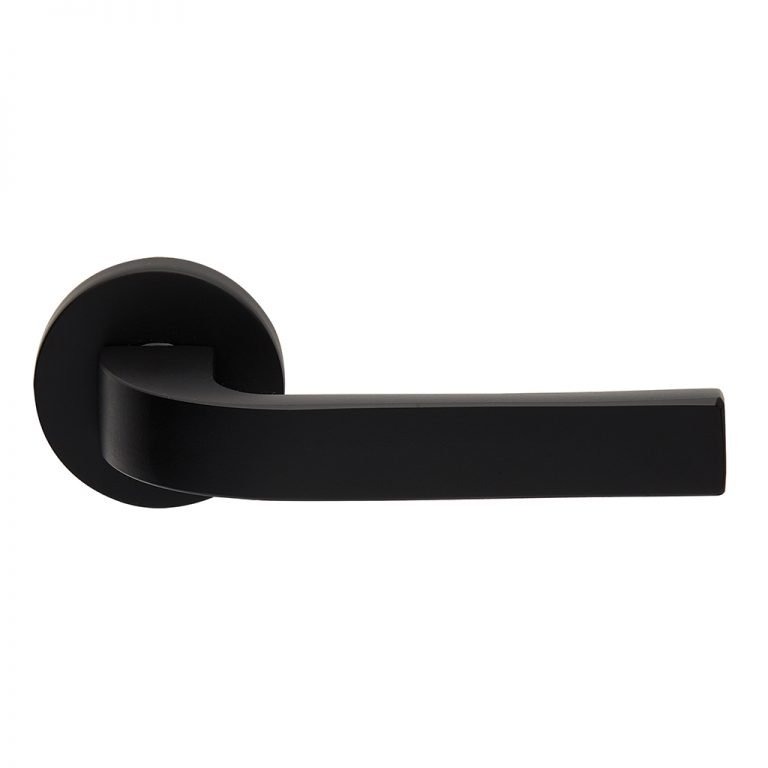 Μοντέρνο πόμολο πόρτας με τετράγωνη ροζέτα με εργονομική λαβή, μία ξεχωριστή πρόταση για το σπίτι, το γραφείο, το ξενοδοχείο.