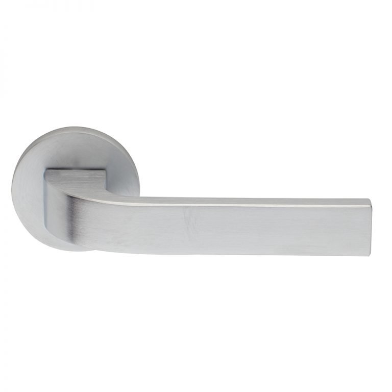 Μοντέρνο πόμολο πόρτας με τετράγωνη ροζέτα με εργονομική λαβή, μία ξεχωριστή πρόταση για το σπίτι, το γραφείο, το ξενοδοχείο.