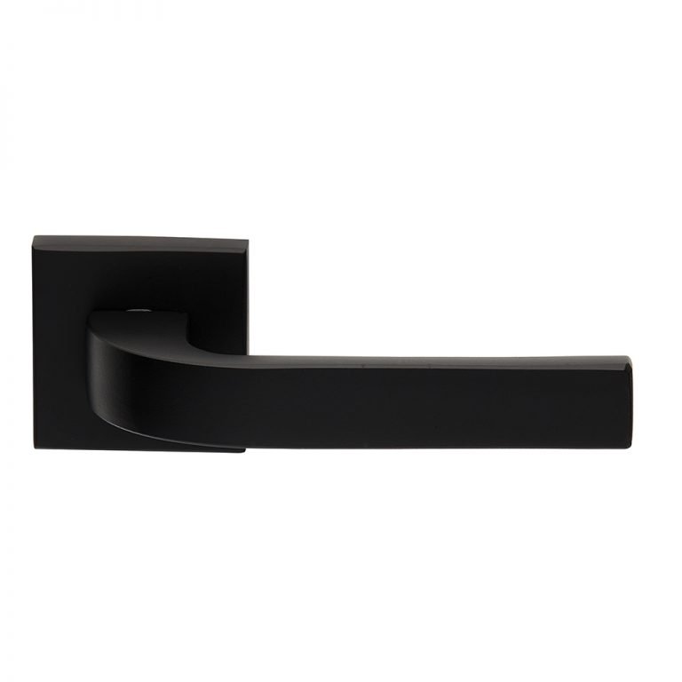 Μοντέρνο πόμολο πόρτας με τετράγωνη ροζέτα με εργονομική λαβή, μία ξεχωριστή πρόταση για το σπίτι, το γραφείο, το ξενοδοχείο.