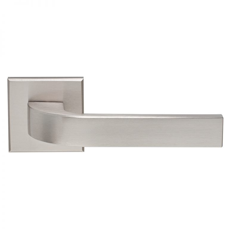 Μοντέρνο πόμολο πόρτας με τετράγωνη ροζέτα με εργονομική λαβή, μία ξεχωριστή πρόταση για το σπίτι, το γραφείο, το ξενοδοχείο.