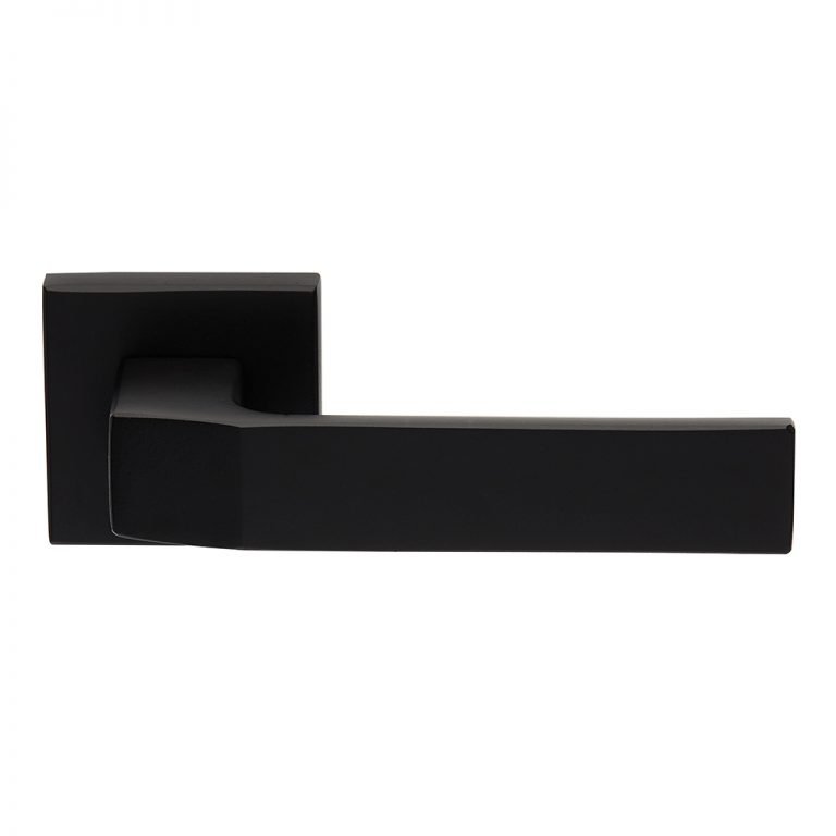 Μοντέρνο πόμολο πόρτας με τετράγωνη ροζέτα με εργονομική λαβή, μία ξεχωριστή πρόταση για το σπίτι, το γραφείο, το ξενοδοχείο.