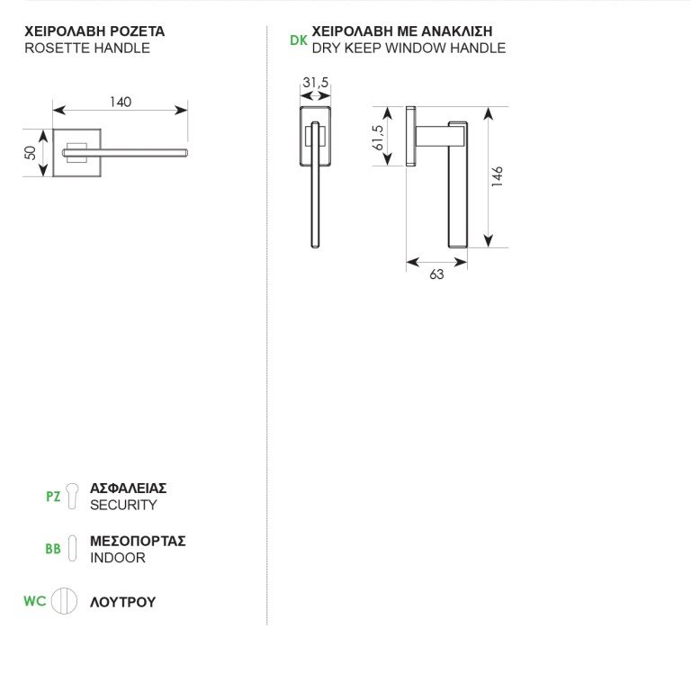 • Η συναρμολόγηση και ο μηχανισμός επαναφοράς στα πόμολα πόρτας είναι για περισσότερο από 200.000 ανοίγματα.