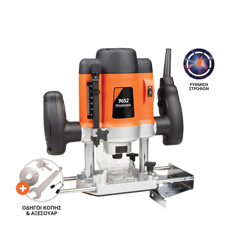 Ρούτερ περιθωρίων βυθιζόμενο KRAUSMANN® 9652, με ισχύ 1400W και ρυθμιζόμενη ταχύτητα.