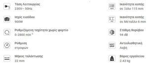 • Ικανότητα κοπής σε ξύλο 115 mm