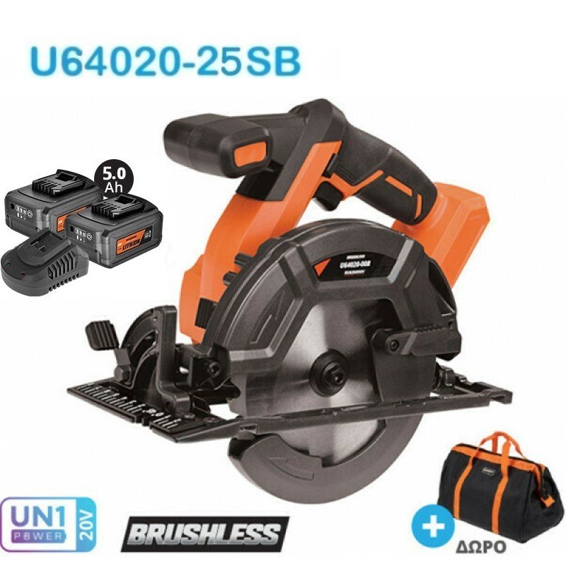 Σετ Δισκοπρίονο BL Επαναφορτιζόμενo 20V Krausmann + 2 x Μπαταρία 5.0Ah + Ταχυφορτιστή + Τσάντα μεταφοράς (U64020-25SB)