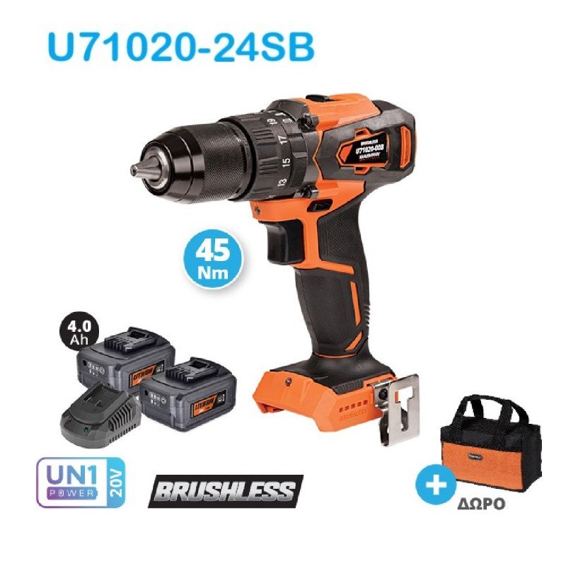 20V Δραπανοκατσάβιδο κρουστικό επαναφορτιζόμενο KRAUSMANN® U71020-00B 45Nm, ιδανικό για διάτρηση σε ξύλο, μέταλλο ή παρόμοια υλικά, και περιστασιακά για διάτρηση με κρούση σε τοιχοποιία ή δομικά υλικά. Το LED εργασίας διαθέτει αισθητήρα φωτός για εξοικονόμηση μπαταρίας σε συνθήκες ημέρας.