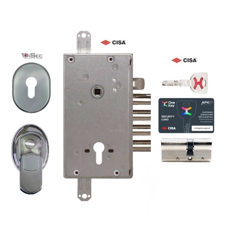 Σετ Κλειδαριά θωρακισμένης πόρτας Cisa Revolution Pro με κύλινδρο Cisa Ap4s & Defender Disec MRM3551