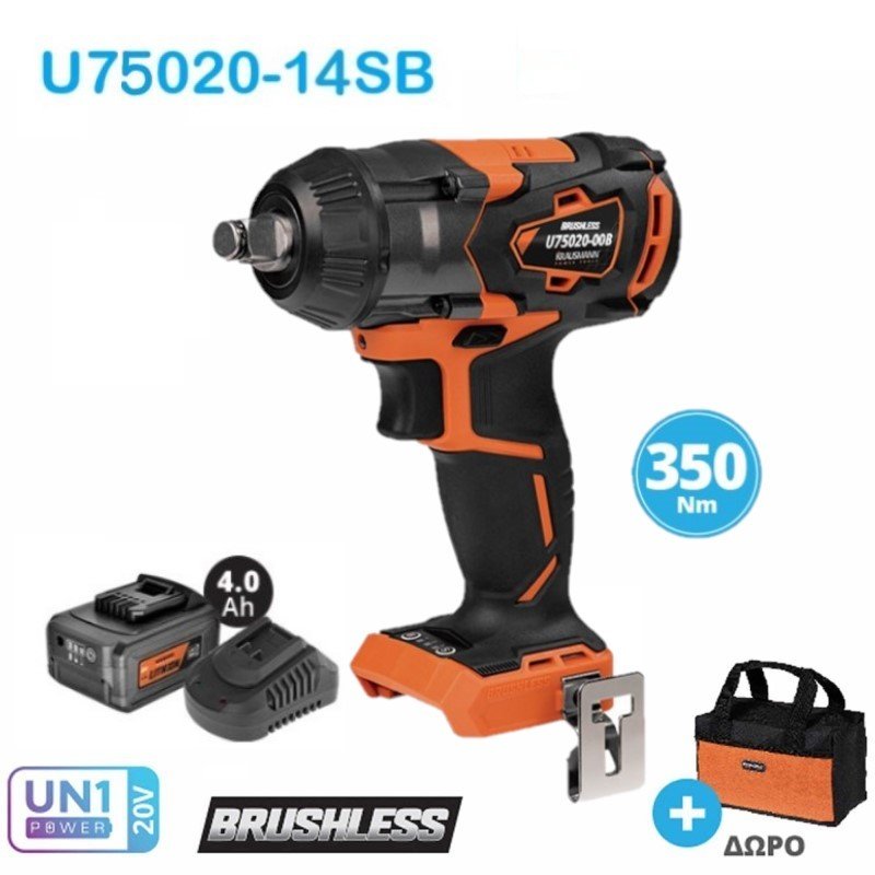Σετ Μπουλονόκλειδο Επαναφορτιζόμενο 20V Krausmann +Μπαταρία 4.0Ah + Ταχυφορτιστή + Τσάντα μεταφοράς (U75020-14SΒ)