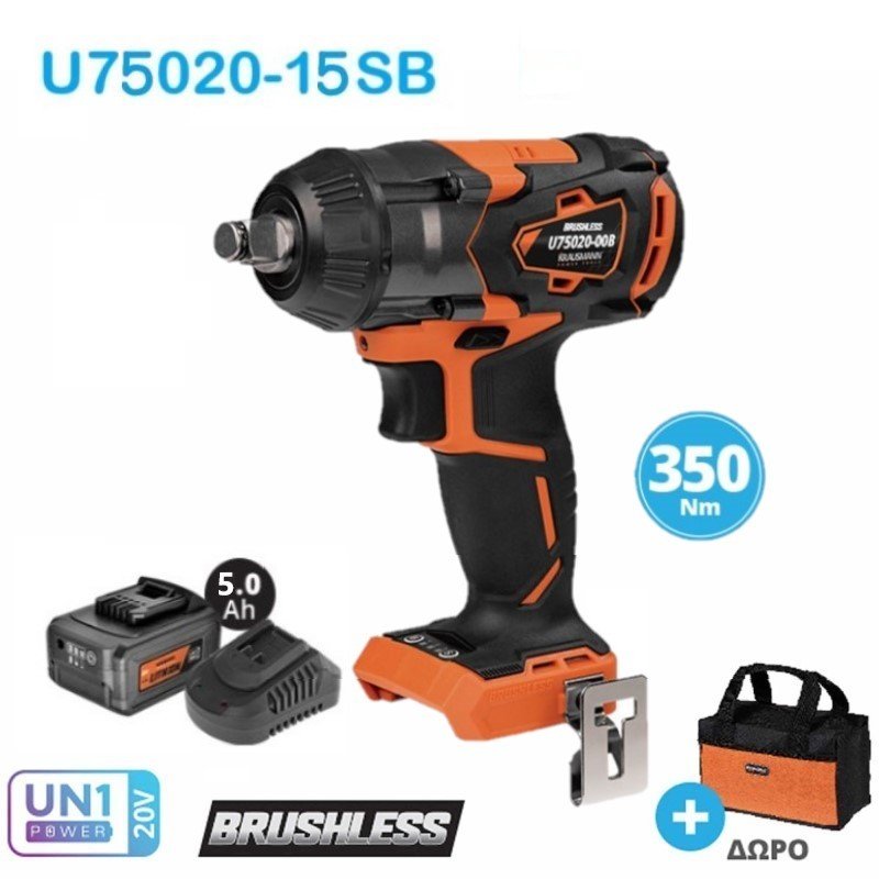 Σετ Μπουλονόκλειδο Επαναφορτιζόμενο 20V Krausmann +Μπαταρία 5.0Ah + Ταχυφορτιστή + Τσάντα μεταφοράς (U75020-15SΒ)