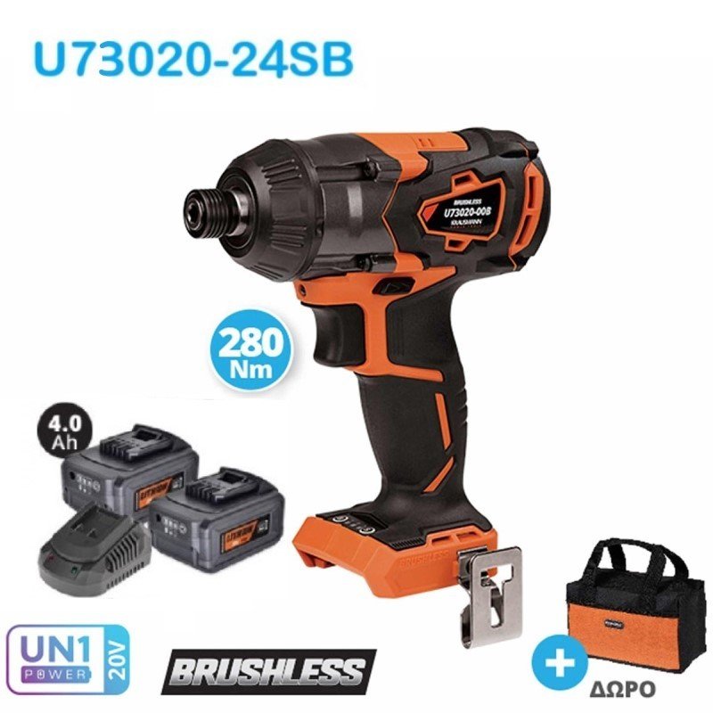 Σετ Παλμικό Κατσαβίδι Επαναφορτιζόμενο 20V Krausmann + 2 x Μπαταρία 4.0Ah + Φορτιστή + Τσάντα μεταφοράς (U73020-24SΒ)