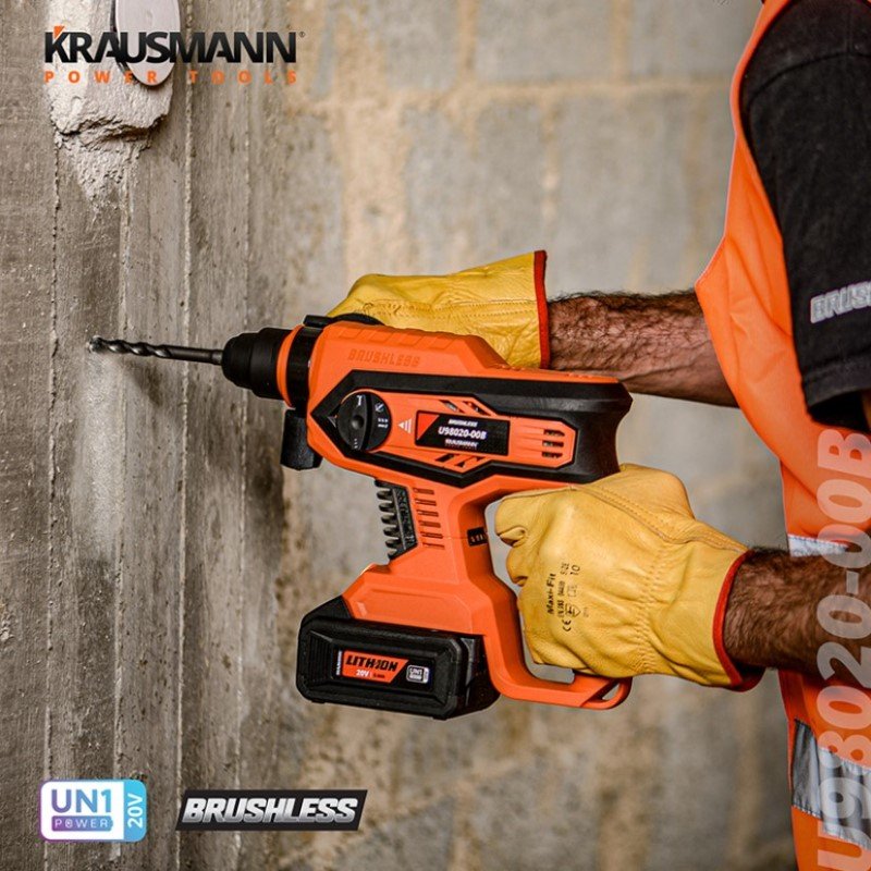 Σετ Πιστολέτο Περιστροφικό Σκαπτικό SDS-Plus Επαναφορτιζόμενο 20V BL Krausmann +Μπαταρία 4.0Ah + Ταχυφορτιστή + Τσάντα μεταφοράς (U98020-14SΒ)